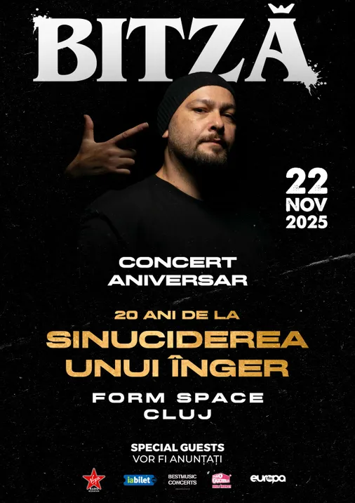 Bitza - concert aniversar pe 22 noiembrie la FORM SPACE din Cluj-Napoca - 20 de ani de la "Sinuciderea unui inger". Primele 200 de bilete au pret earlybird. O serie de invitati speciali vor fi anuntati in curand.